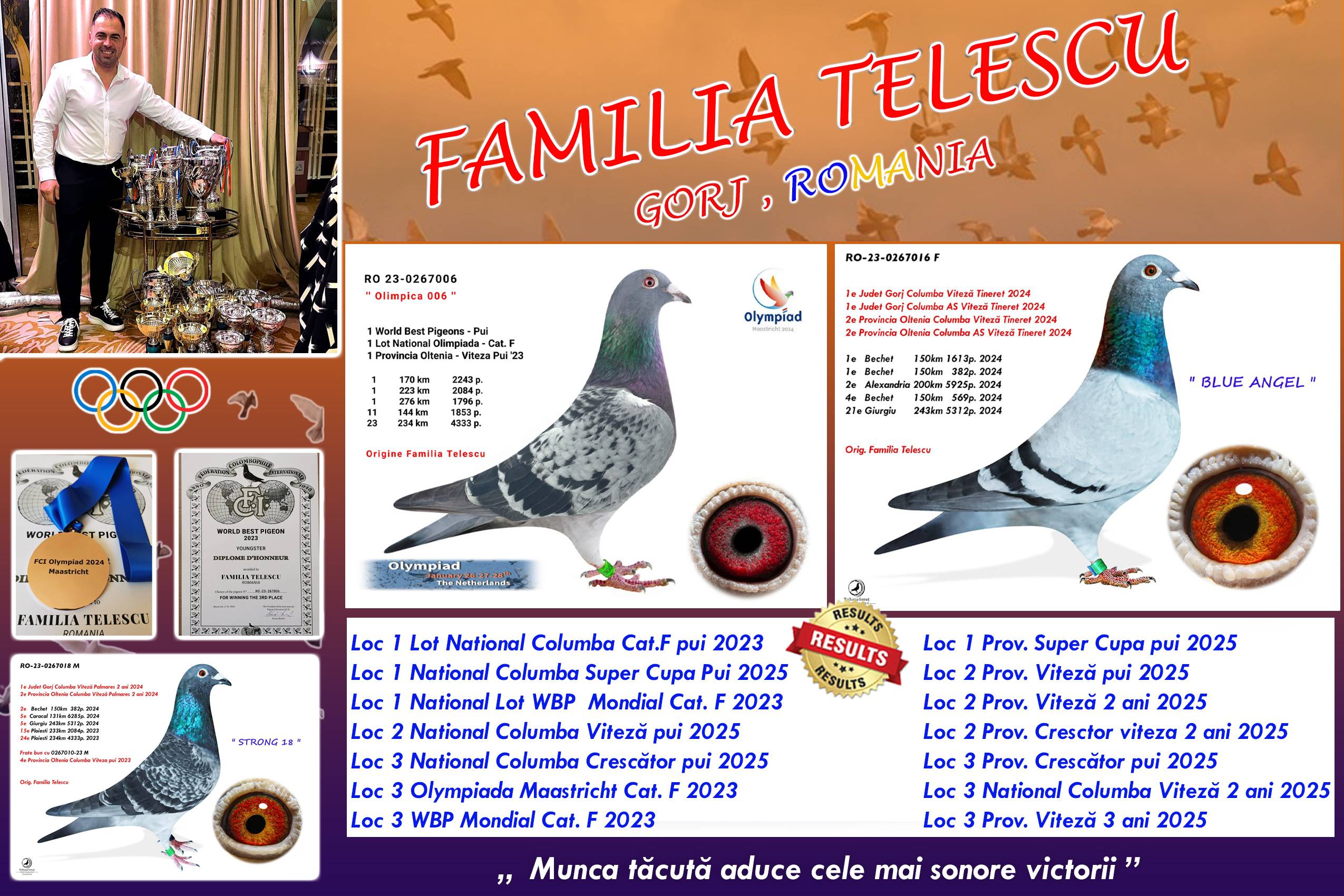Familia Telescu (Gorj) este una dintre cele mai constante și competitive crescătorii din România, cu rezultate de top atât la pui, cât și la maturi. Cunoscuți pentru disciplina lor, un program de pregătire extrem de riguros și investițiile continue în linii de viteză–demifond, obțin an de an performanțe de nivel național și internațional.