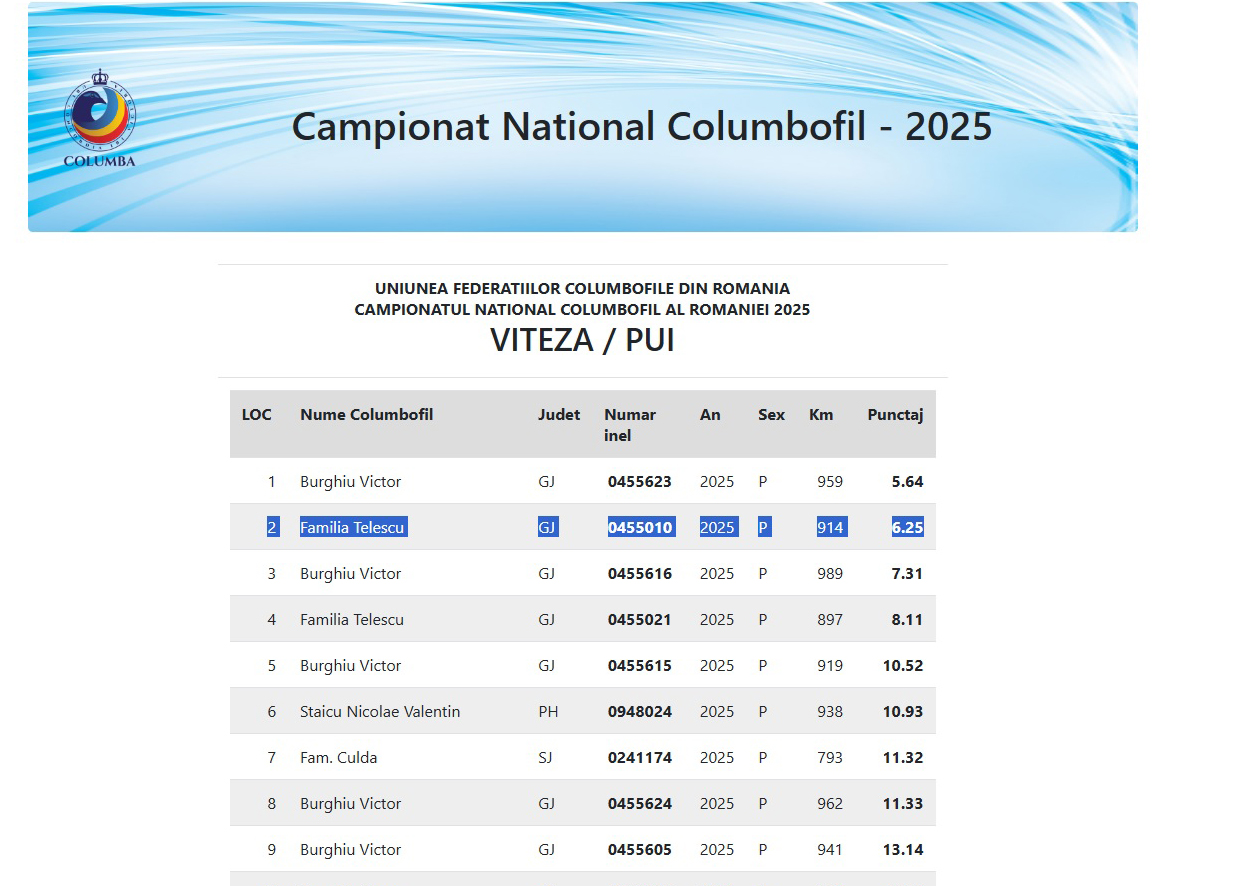 2e Nat. Columba Viteză pui 2025