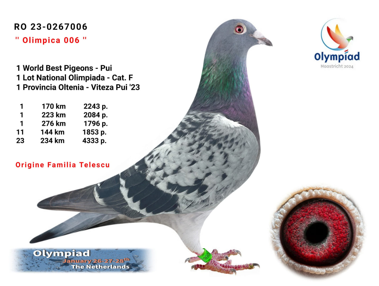 1e Lot Olympic WBP Pigeon 2023