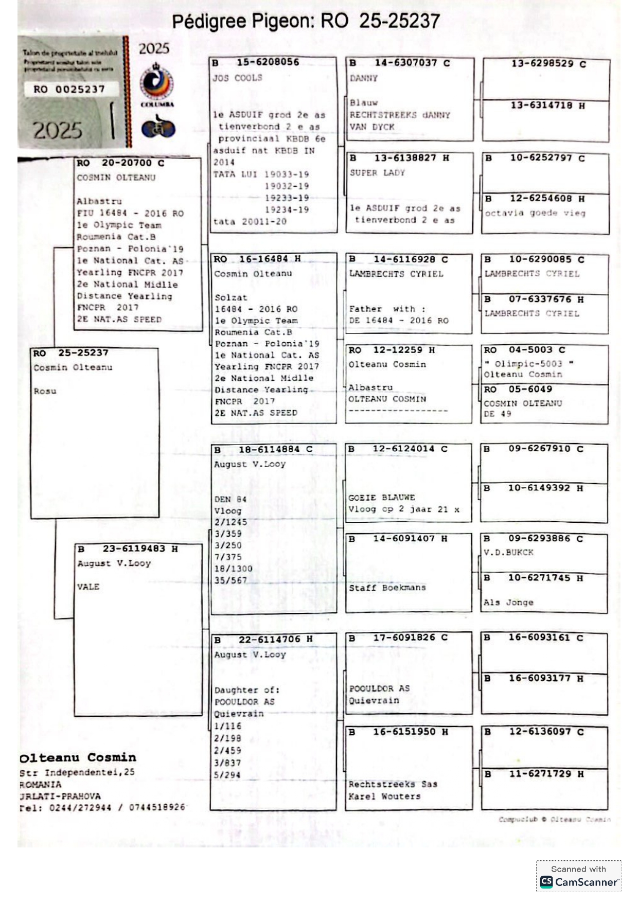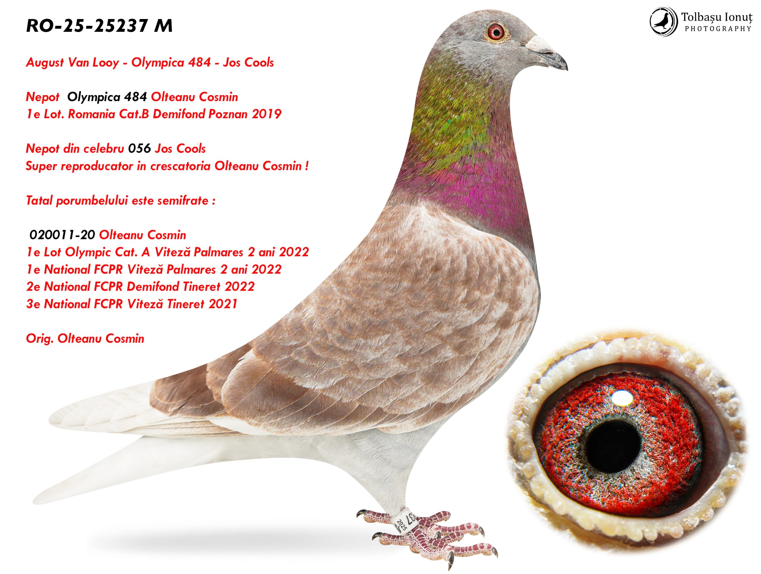 2.RO-25-25237 M ♂ Nepot Olympica 484 Olteanu Cosmin 1e Lot. Romania Cat.B Demifond Poznan 2019 Nepot din celebru 056 Jos Cools