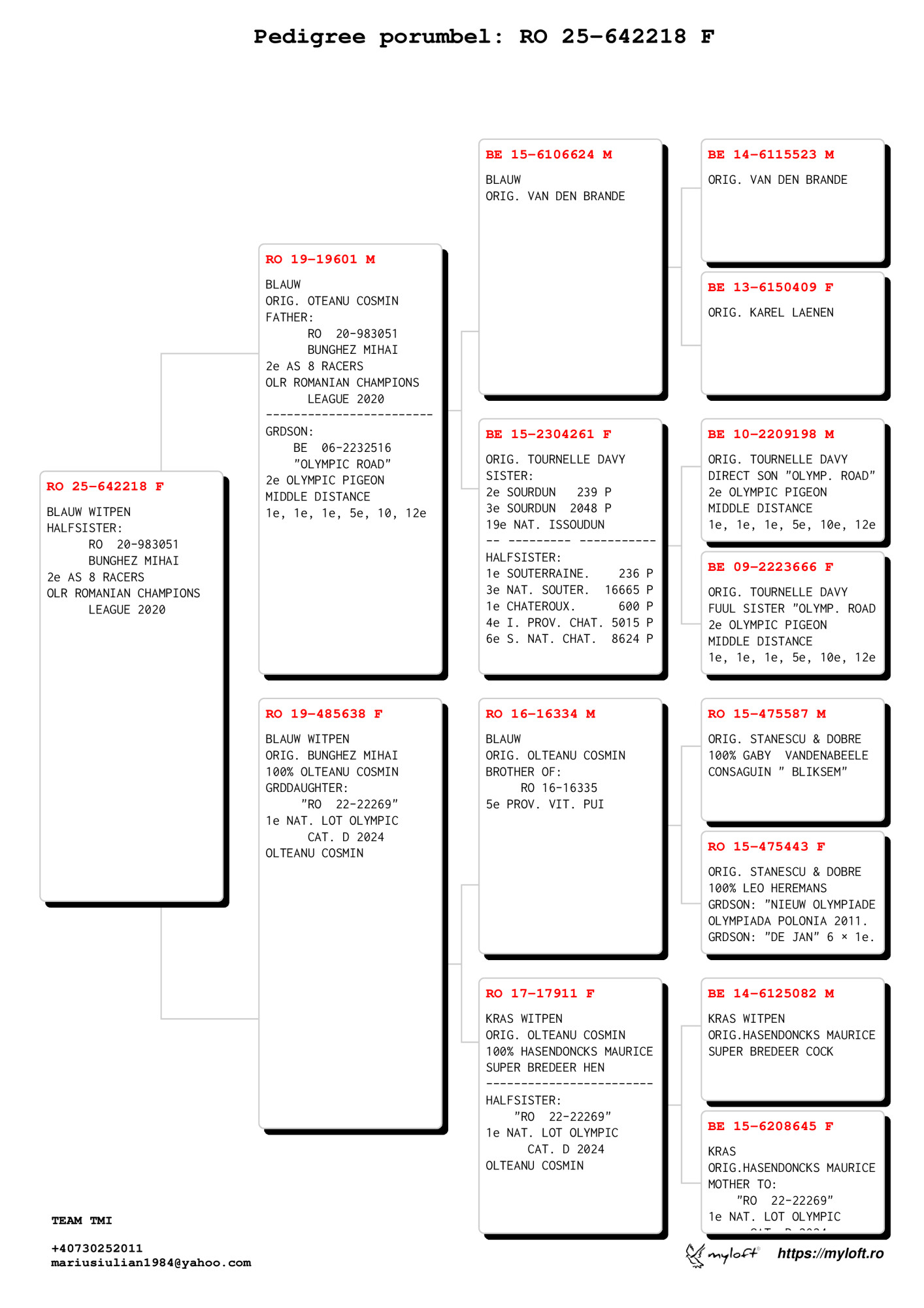2.RO-25-642218 F ♀ V.D Brande – Tournelle Linie Hasendonckx 082 Olteanu Cosmin Super Reproducator !!
