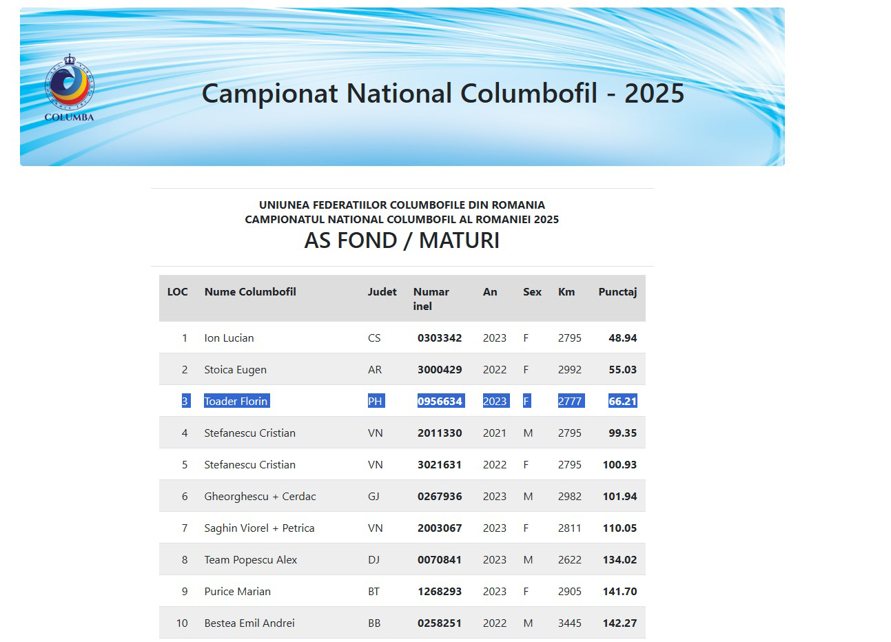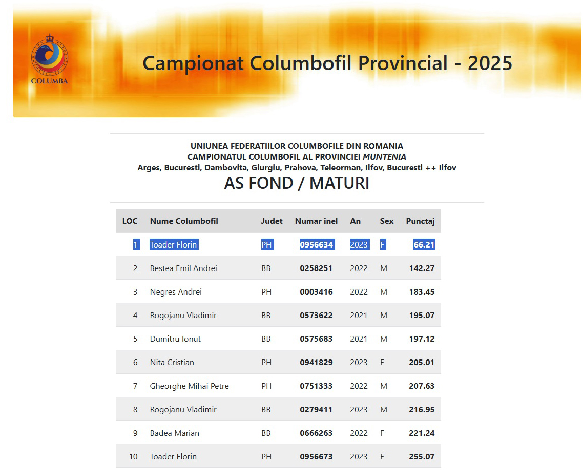 2.RO-25-880331 M ♂ Semifrate 956634-23 Toader Florin 3e Nat. Columba AS Fond Maturi 2025 Nepot 40066651-171e AS Fond Maturi Prahova 2020