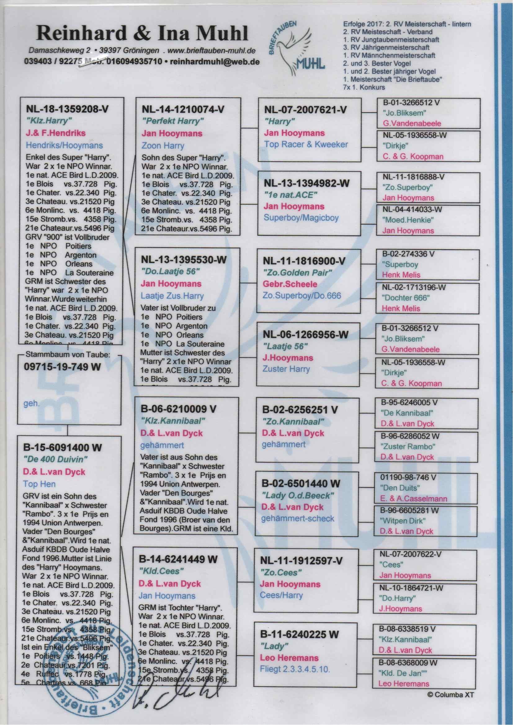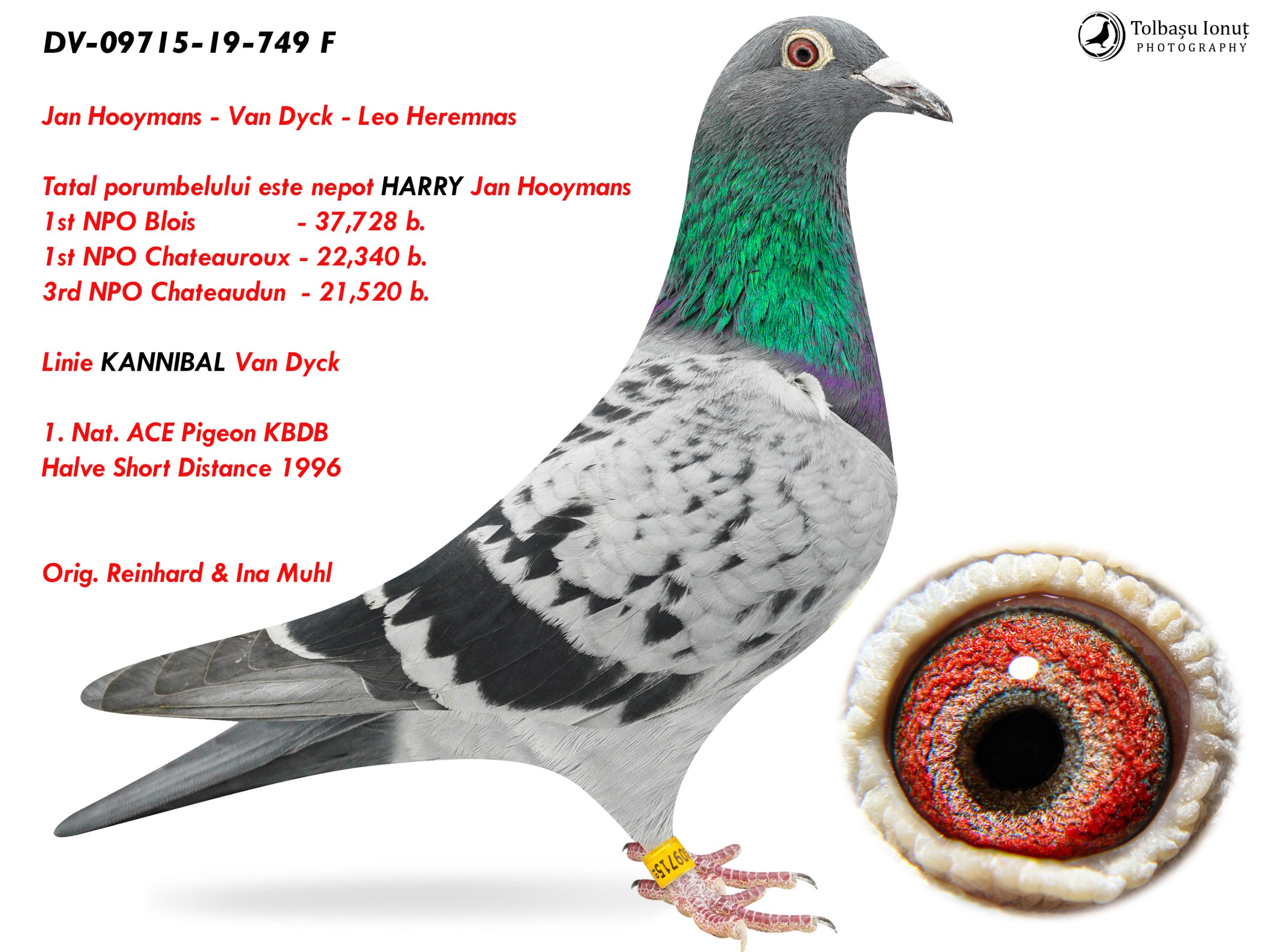 3.DV-09715-19-749 F ♀ Tatal porumbelului este nepot HARRY Jan Hooymans 1st NPO Blois – 37,728 b. 1st NPO Chateauroux – 22,340 b.