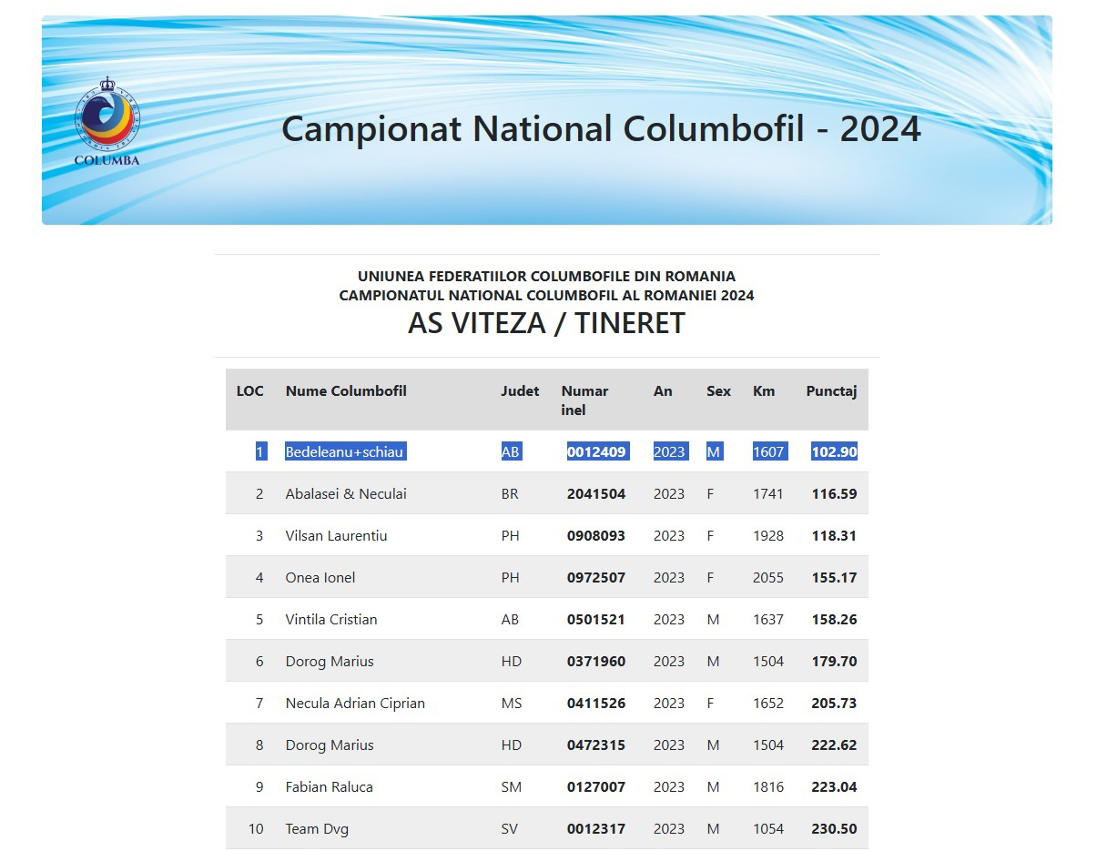 1e National Columba AS Viteză Tineret 2023