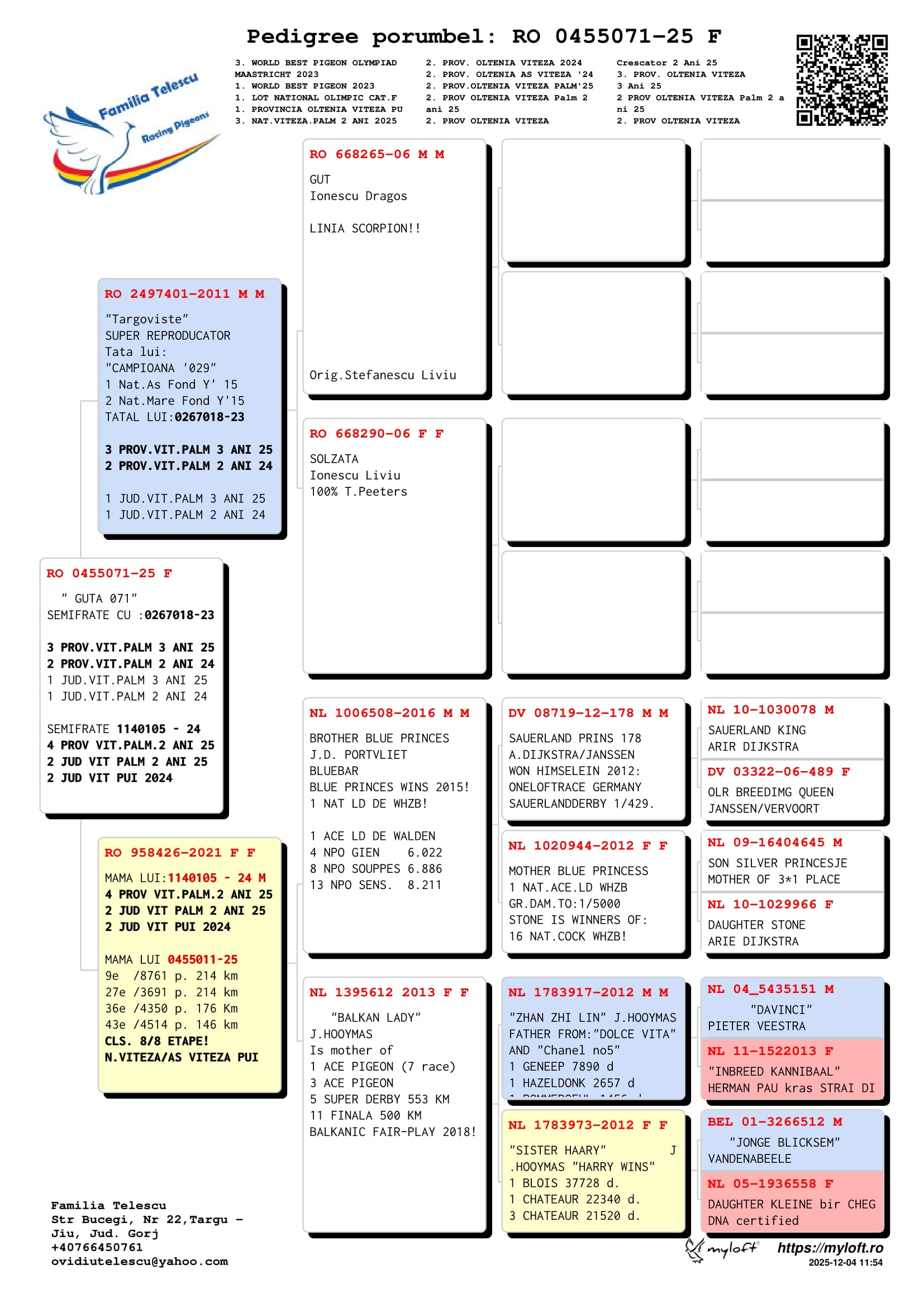3.RO-25-455071 M ♂ Semifrate 267018-23 Familia Telescu 3e Prov. Viteza Palm 3 ani 2025 2e Prov. Viteza Palm 2 ani 2024 Dijkstra – Veenstra