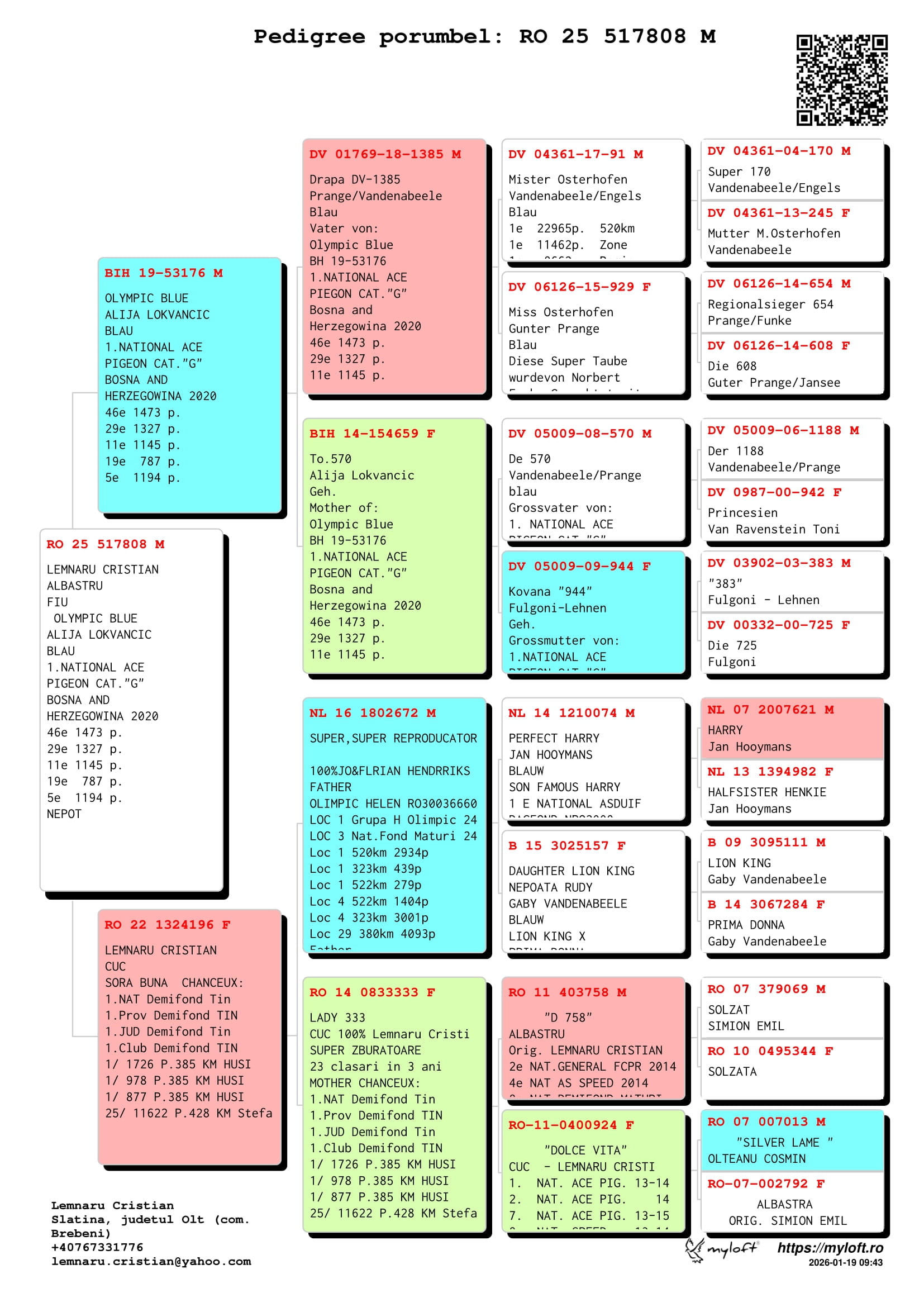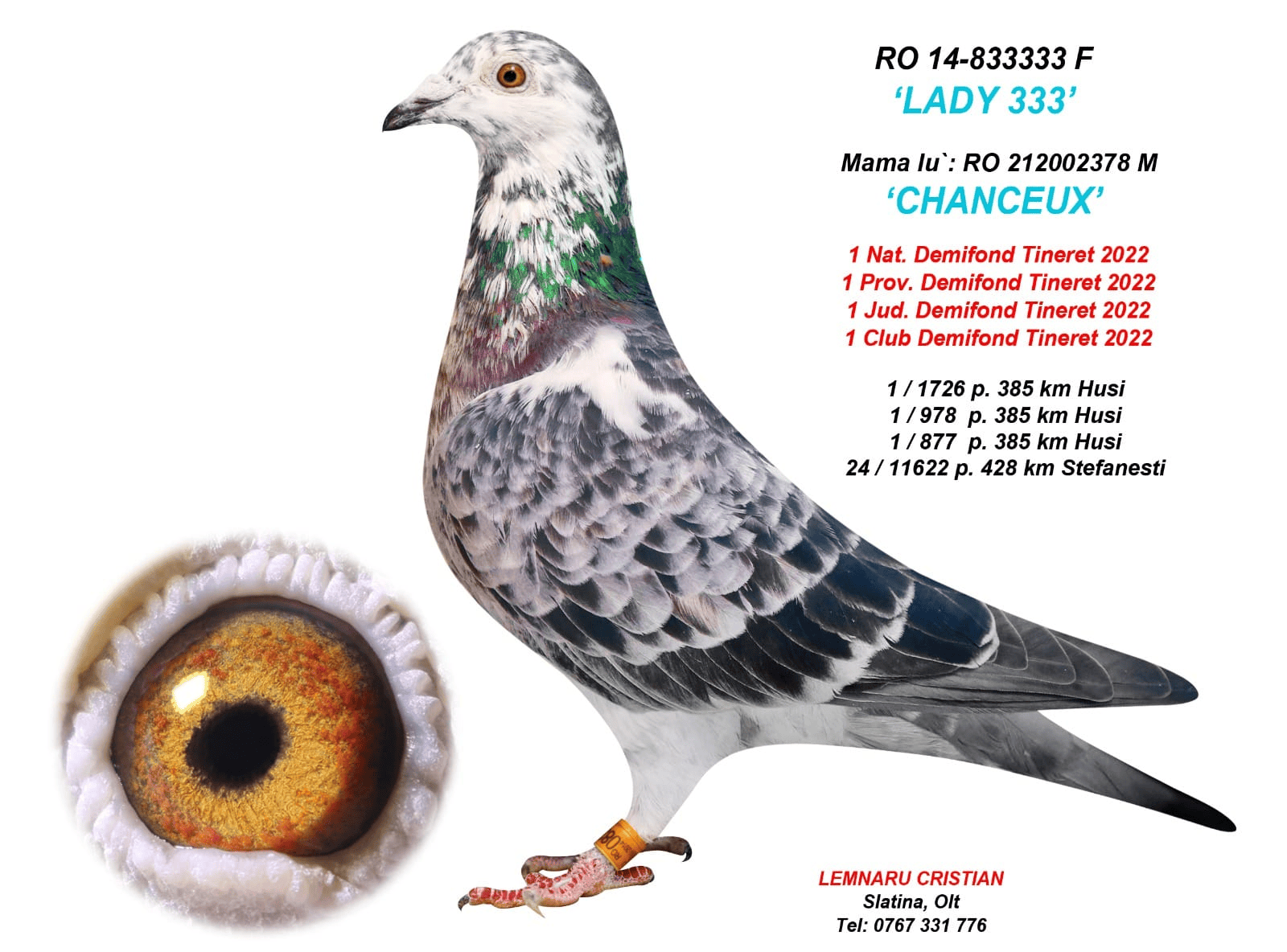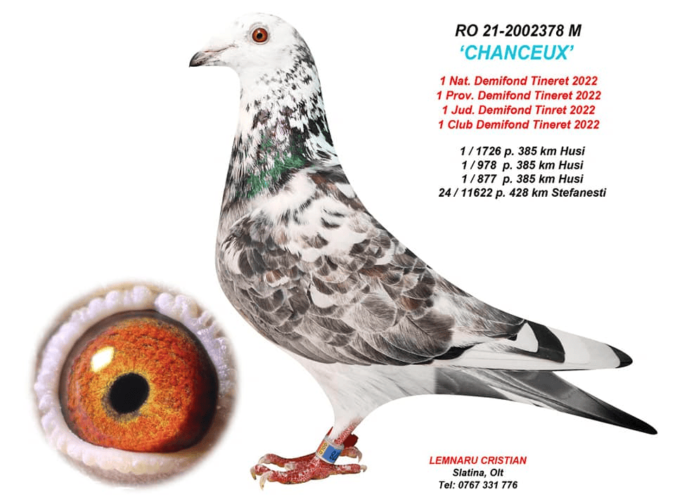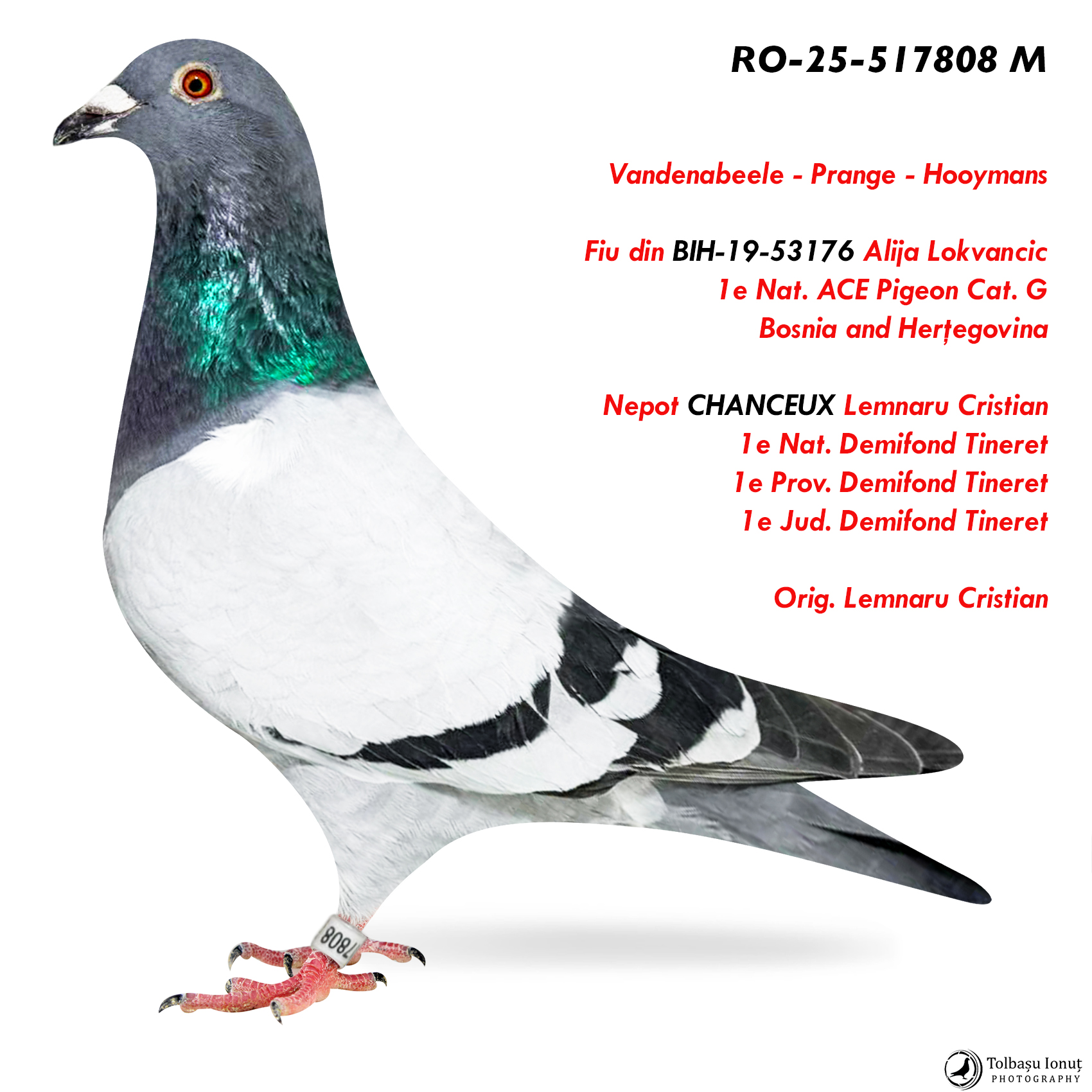 3.RO-25-517808 M ♂ Fiu din BIH-19-53176 Alija Lokvancic 1e Nat. ACE Pigeon Cat. G Nepot CHANCEUX 1e Nat. Demifond Tineret