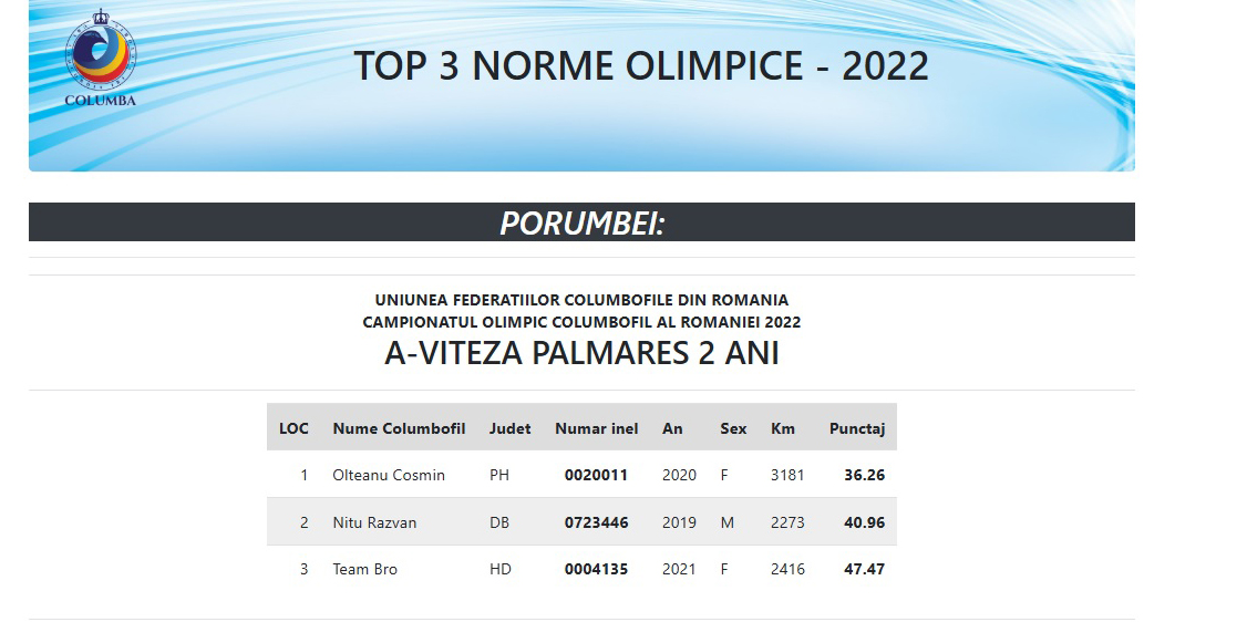 9.RO-25-2006265 M ♂ Consangvin Olympica 060 3e Lot Olympic Cat. B 2022 3e Nat. FCPR Demifond Tineret 2020