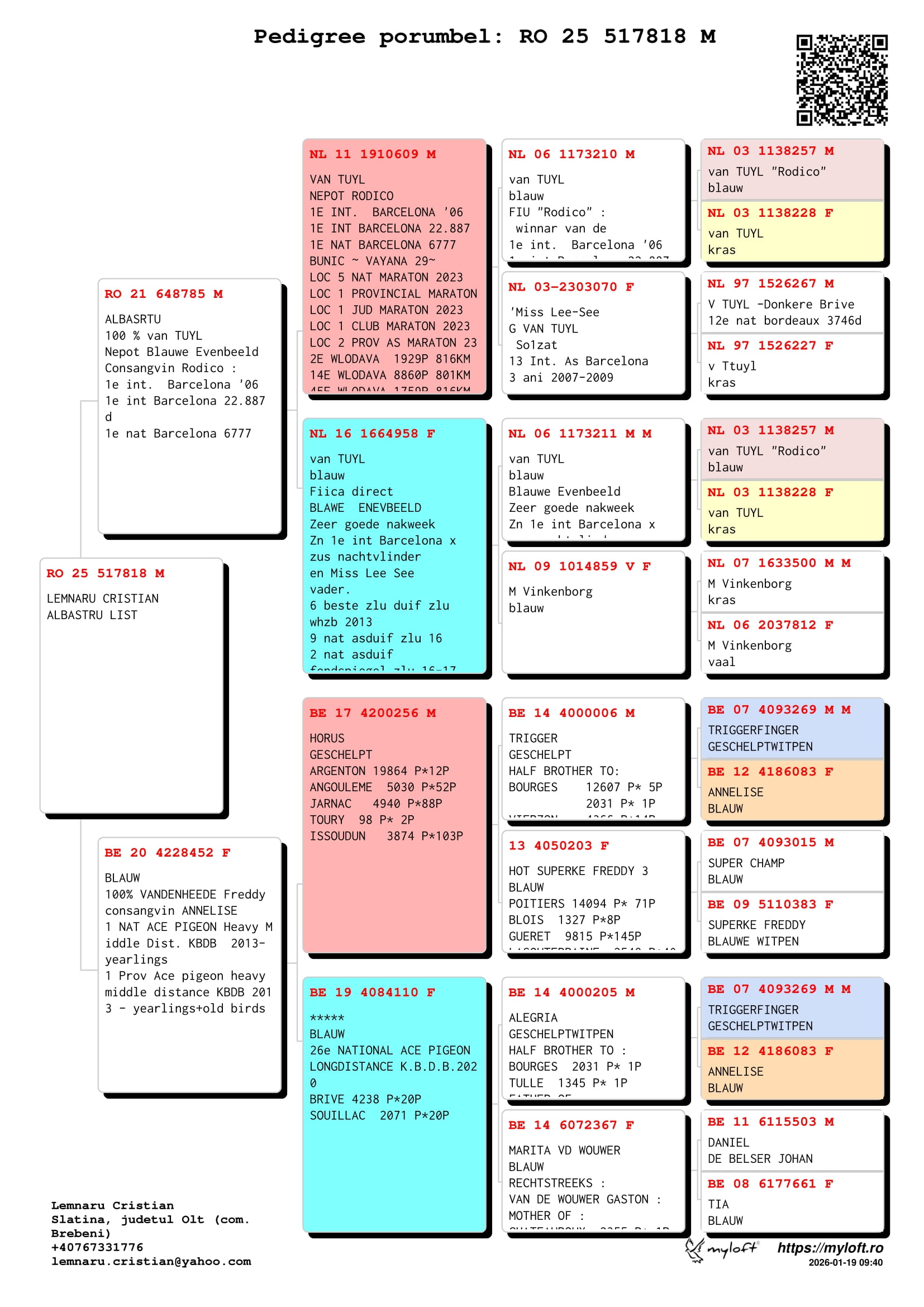 5.RO-25-517818 M ♂ Consangvin RODICO Gerard van Tuyl 1e Int. Barcelona 2006 1e Int. Barcelona 22887p. 1e Nat. Barcelona 6777p.