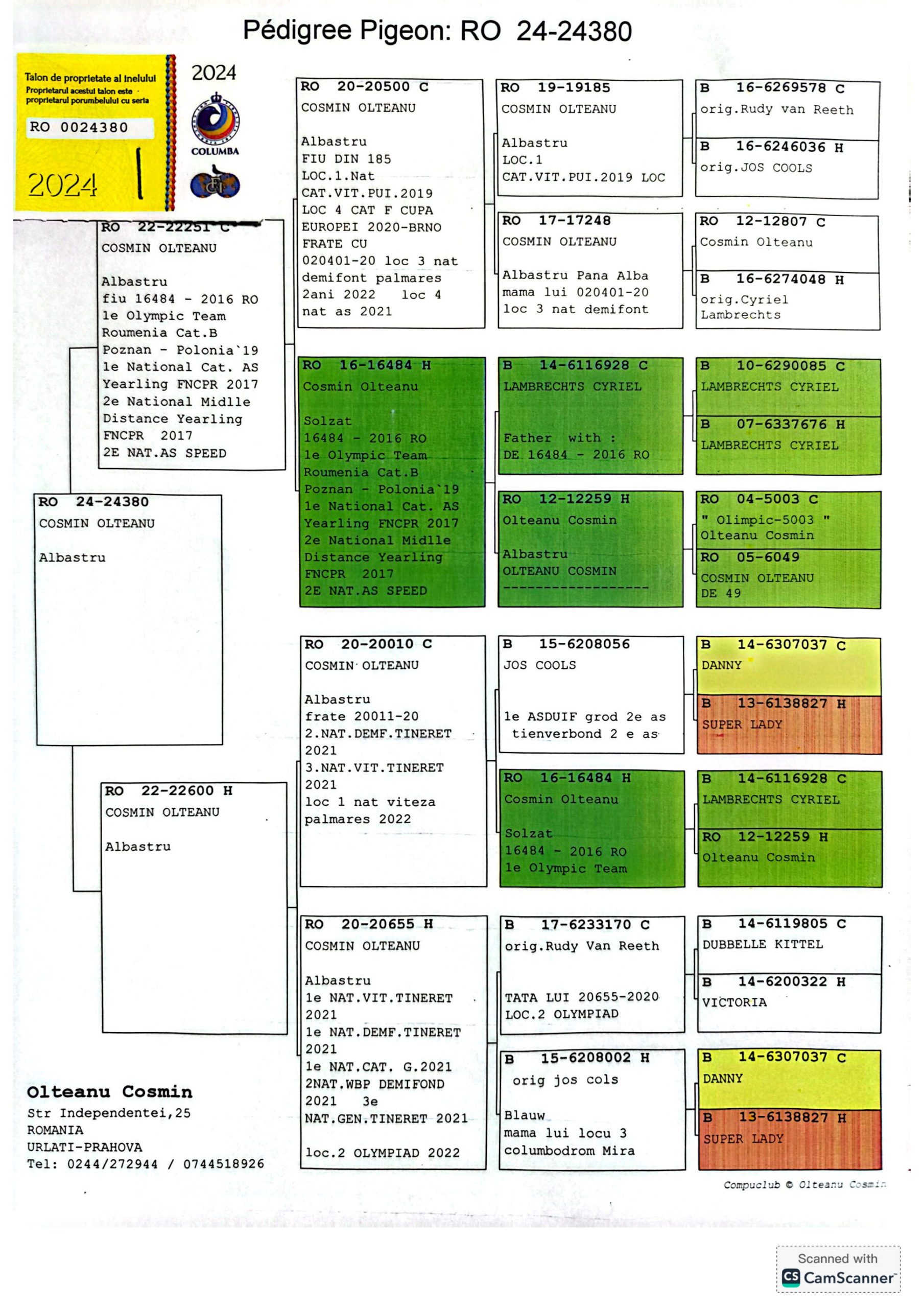 6.RO-24-24380 F ♀ Consangvina * 020011-20 * 1e Lot Olympic Cat. A Viteză Palmares 2 ani 2022 1e National FCPR Viteză Palmares