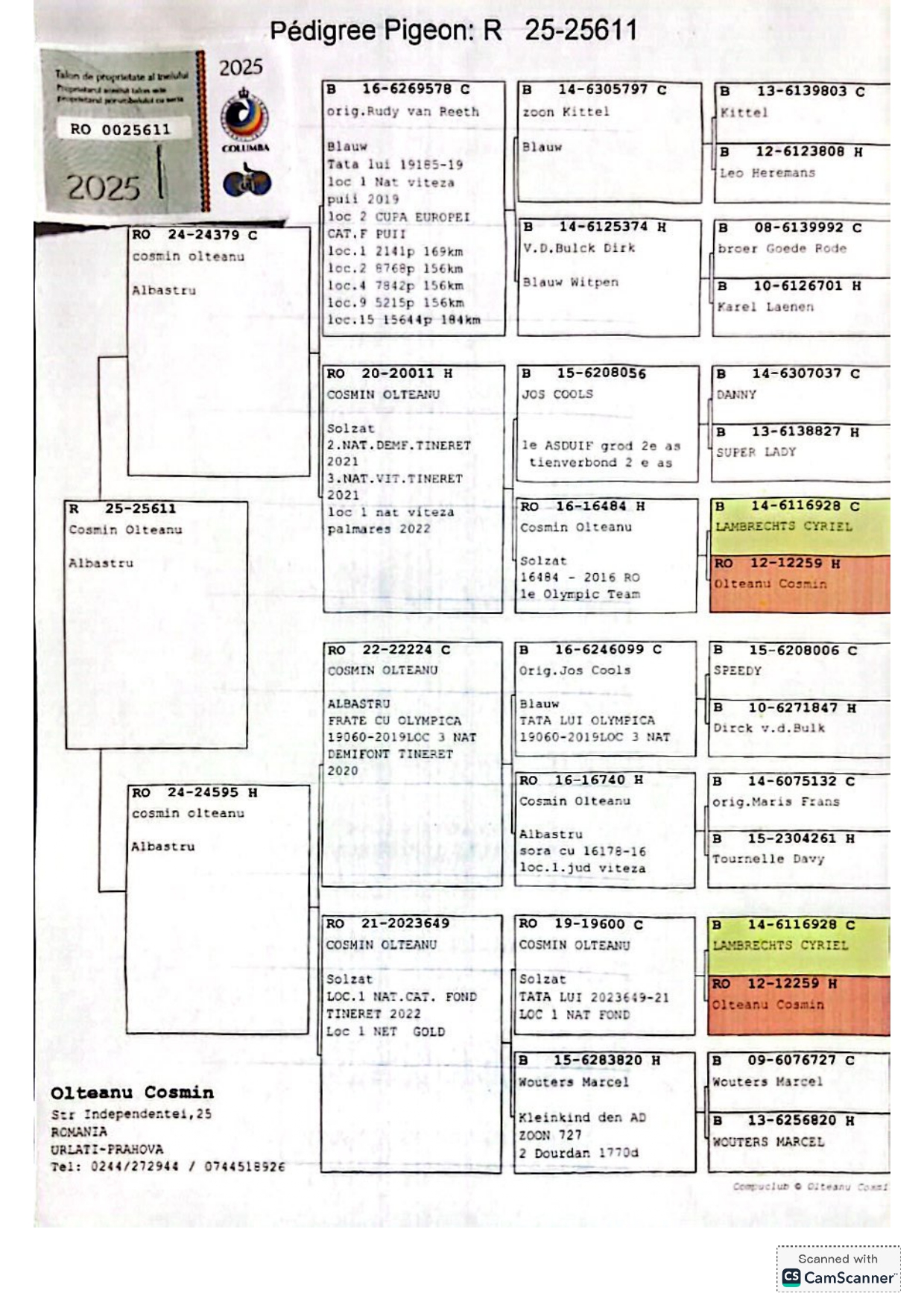3.RO-25-25611 F ♀ Nepoata a 2 porumbei olimpici Olympica 20011 & Olympica 060 Nepoata * 2023649-21 * 1e National Fond Tineret 2022